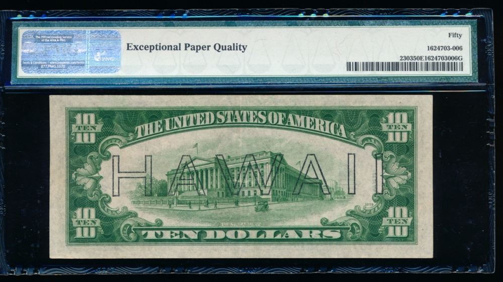 One 1934A $10 Hawaii Federal Reserve Note PMG 50EPQ.