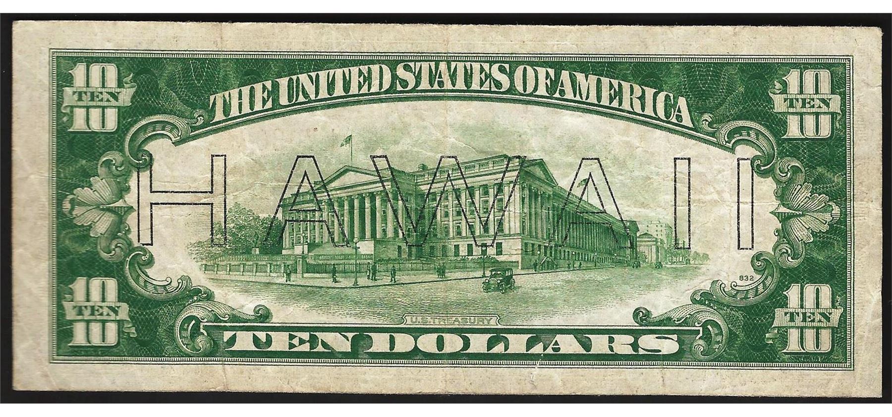 One 1934A $10 Hawaii Federal Reserve Note WWII Emergency Note.