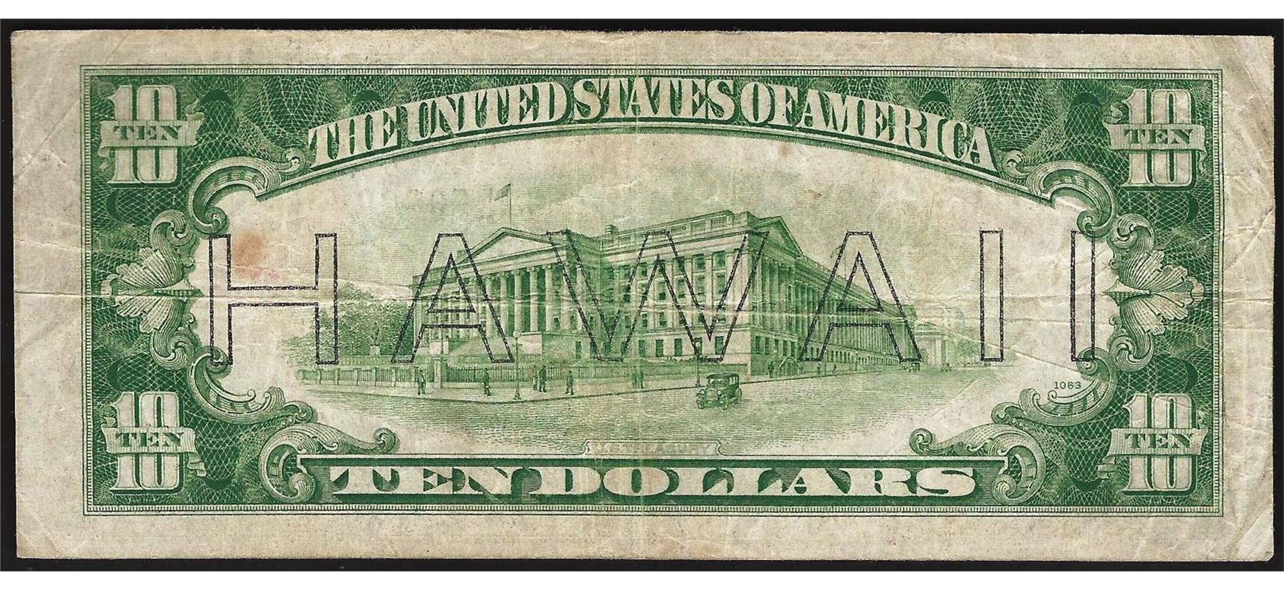 One 1934A $10 Hawaii Federal Reserve Note WWII Emergency Note.