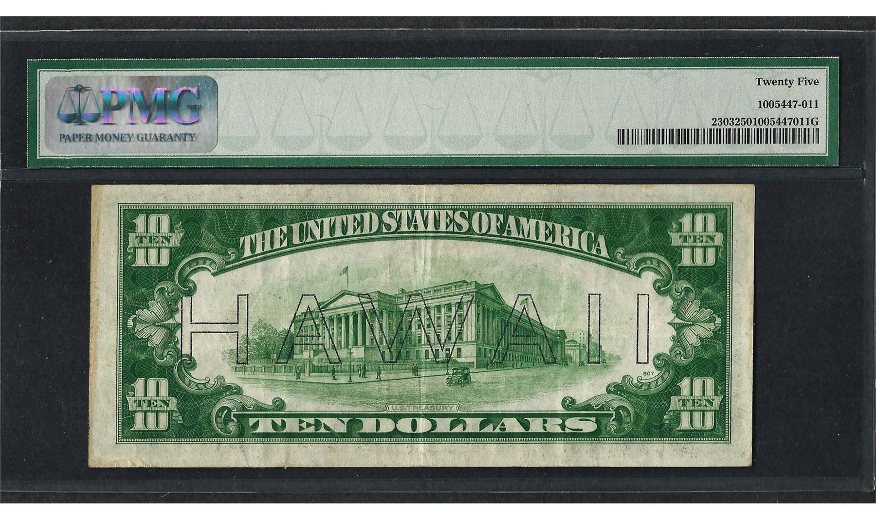 1934A $10 Hawaii Federal Reserve WWII Emergency Note Fr.2303 PMG Very Fine 25