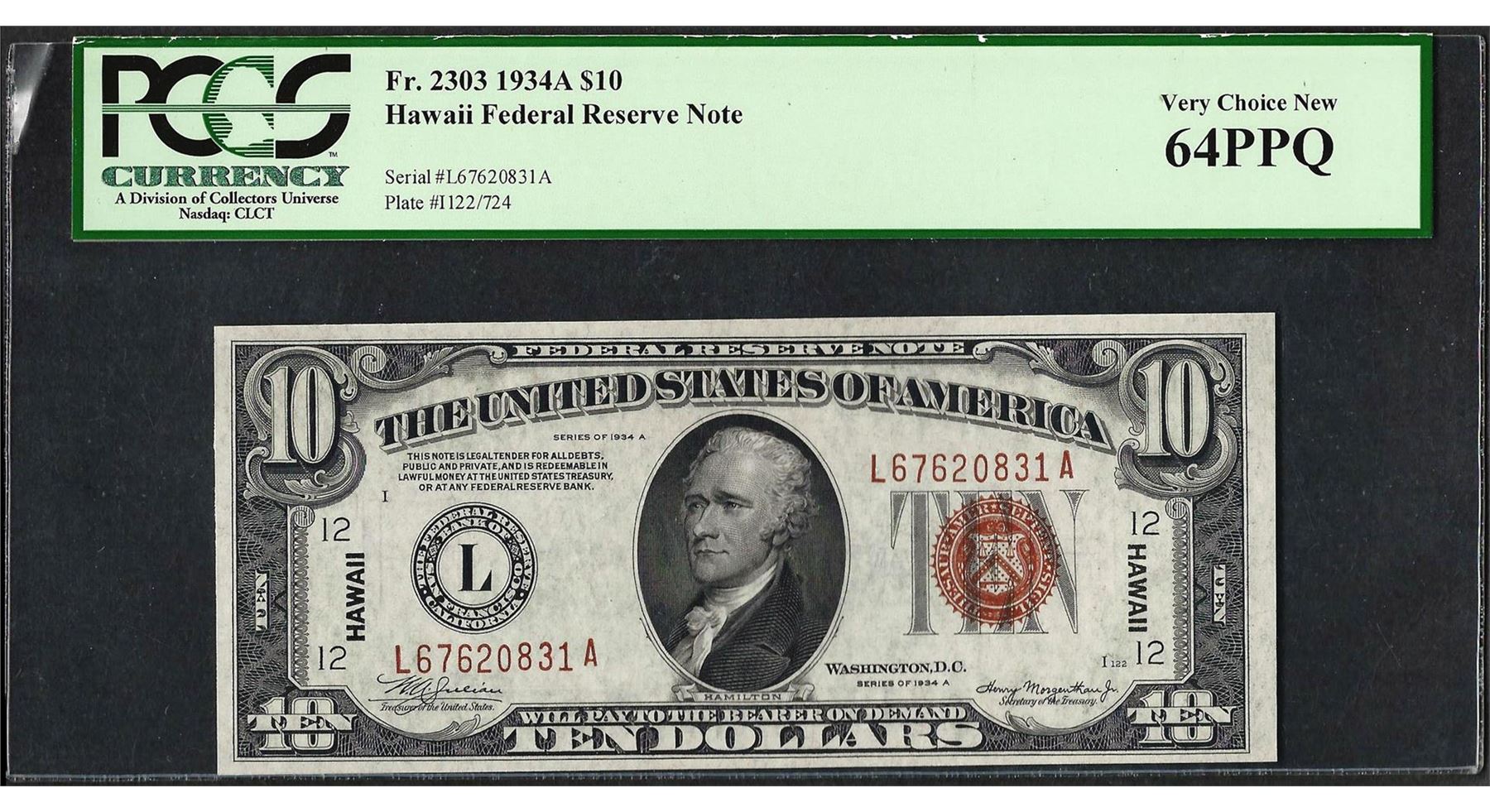 1934A $10 Hawaii Federal Reserve WWII Emergency Note PCGS Very Choice New 64PPQ