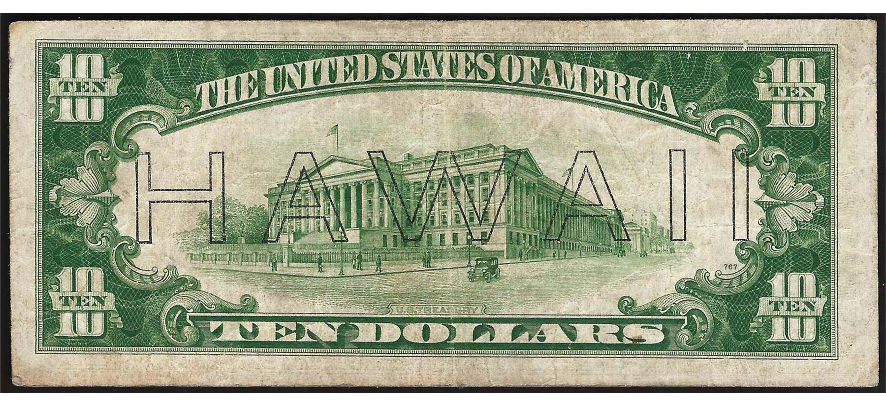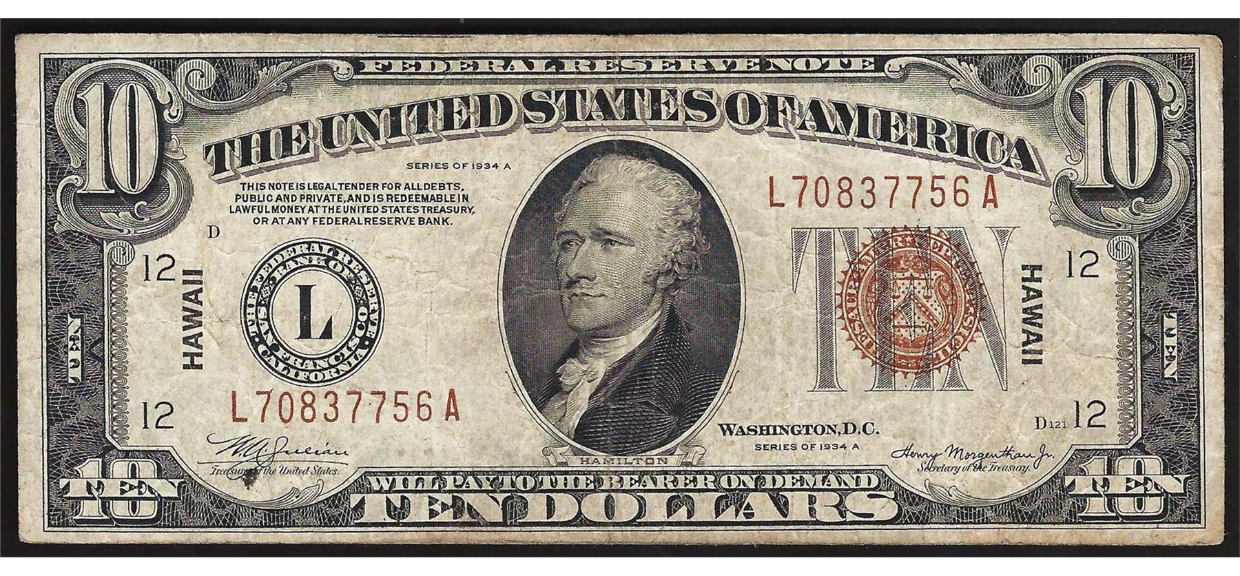 One 1934A $10 Hawaii Silver Certificate WWII Emergency Note.