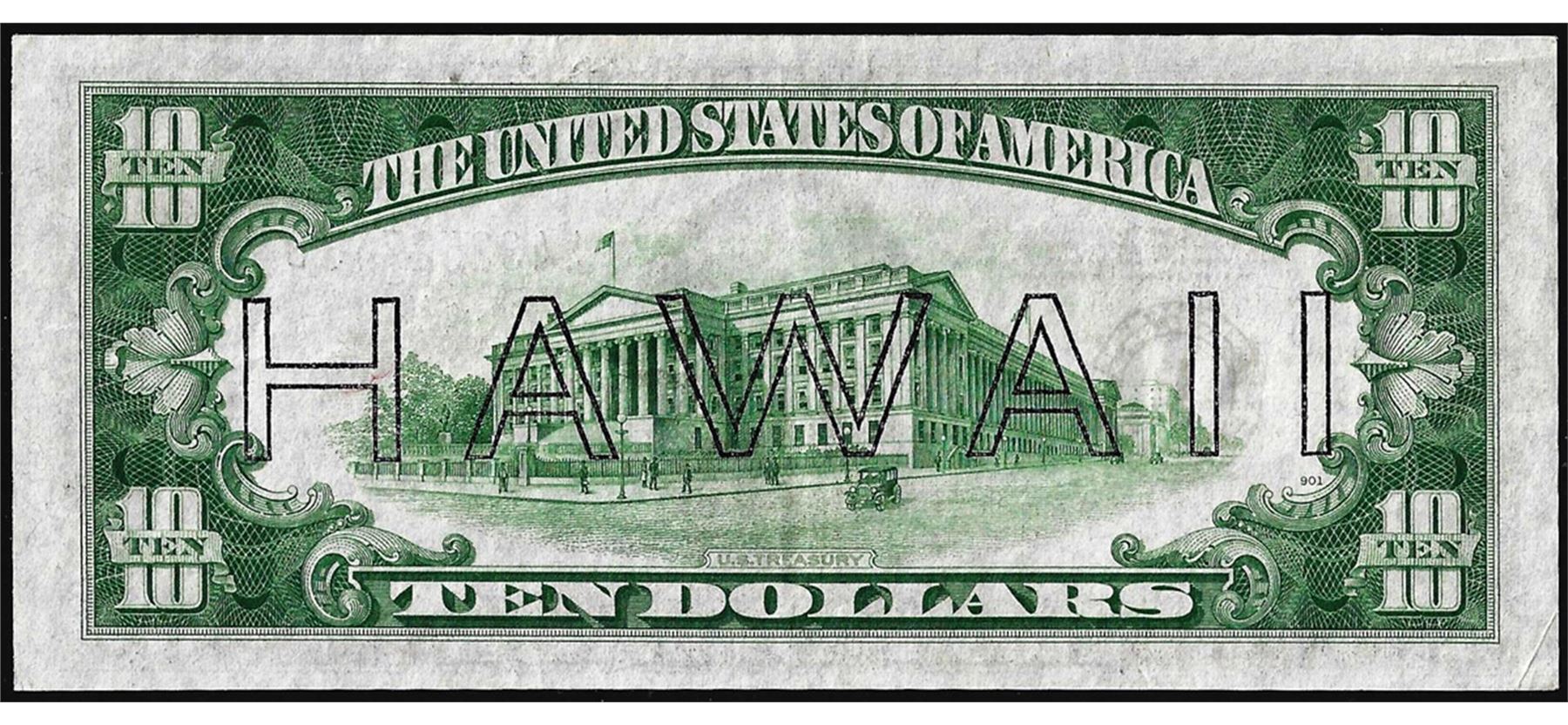 One 1934A $10 Hawaii WWII Emergency Issue Federal Reserve Note.