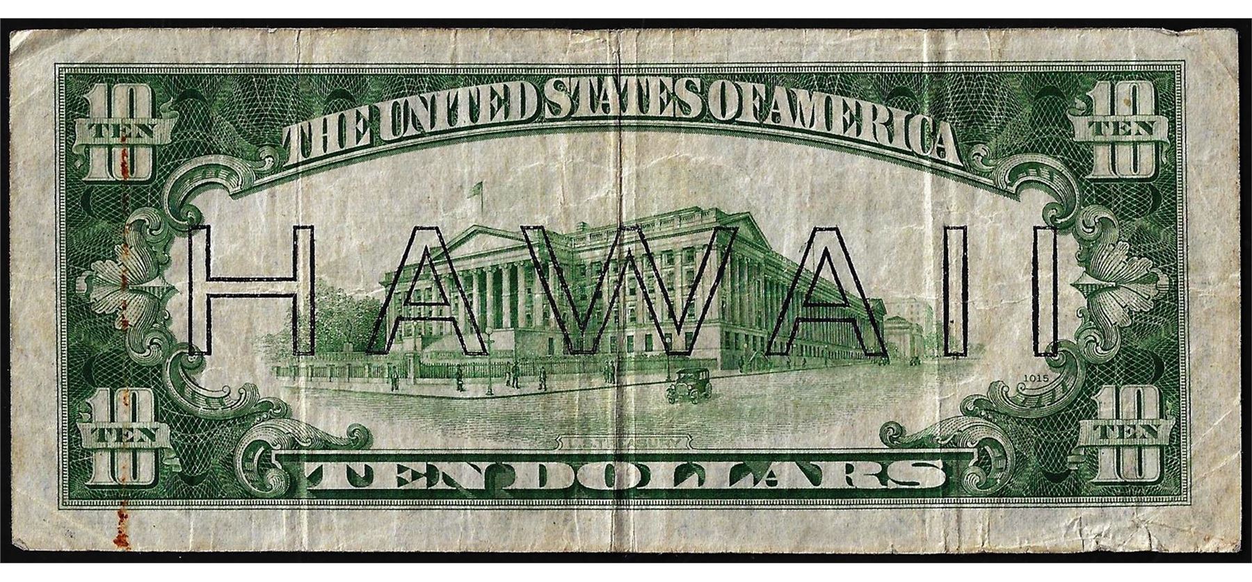 One 1934A $10 Hawaii WWII Emergency Issue Federal Reserve Note.