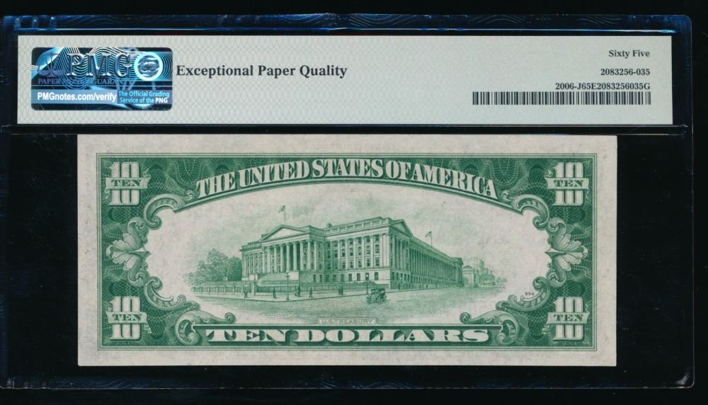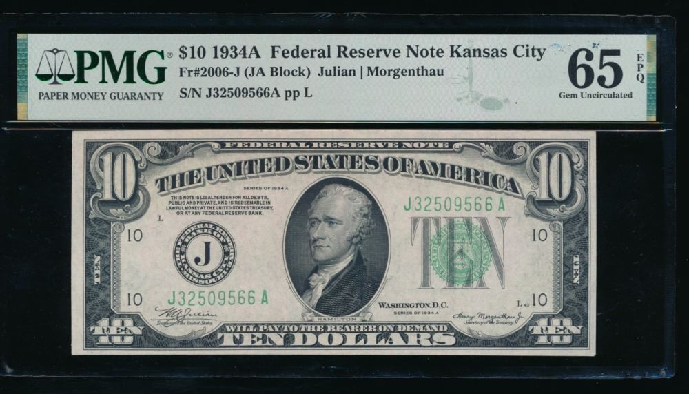 One 1934A $10 Kansas City FRN PMG 65EPQ.