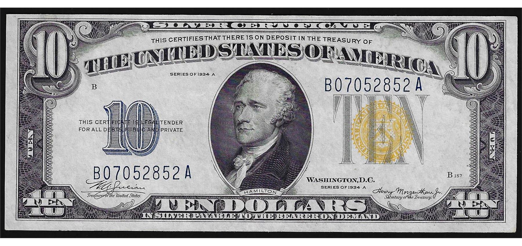 One 1934A $10 North Africa Silver Certificate WWII Emergency Note.