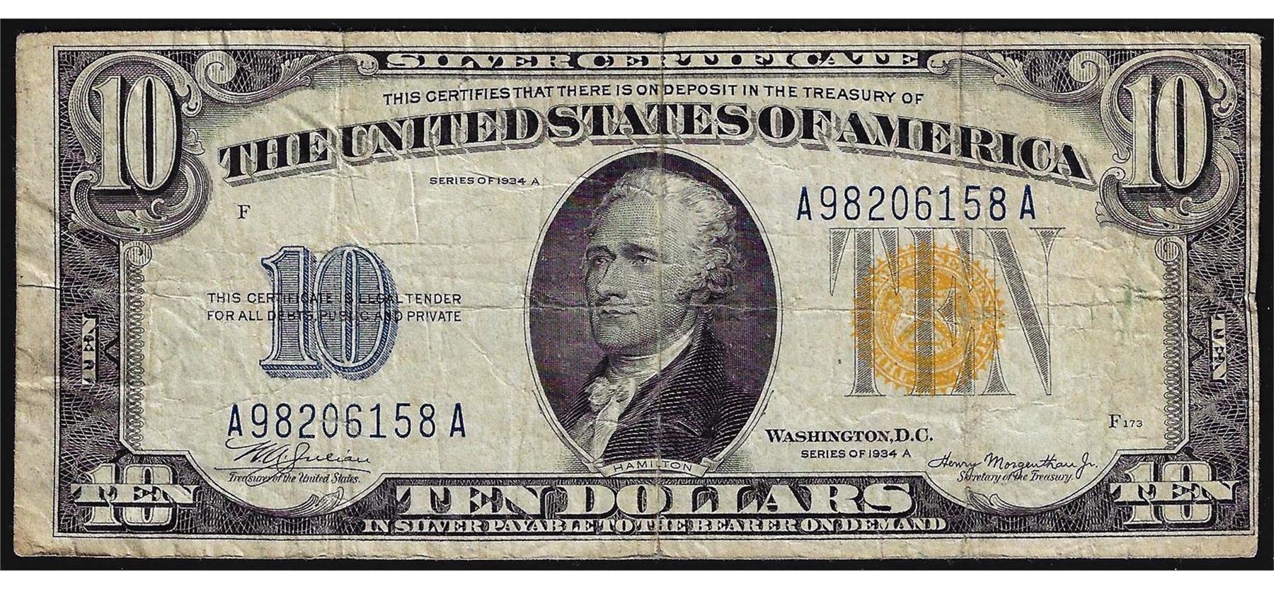 One 1934A $10 North Africa Silver Certificate WWII Emergency Note.