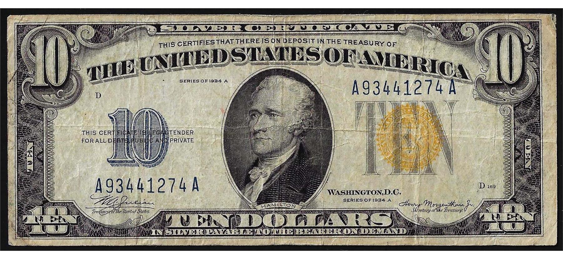 One 1934A $10 North Africa Silver Certificate WWII Emergency Note.