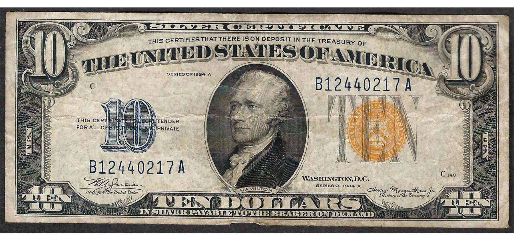 One 1934A $10 North Africa Silver Certificate WWII Emergency Note.