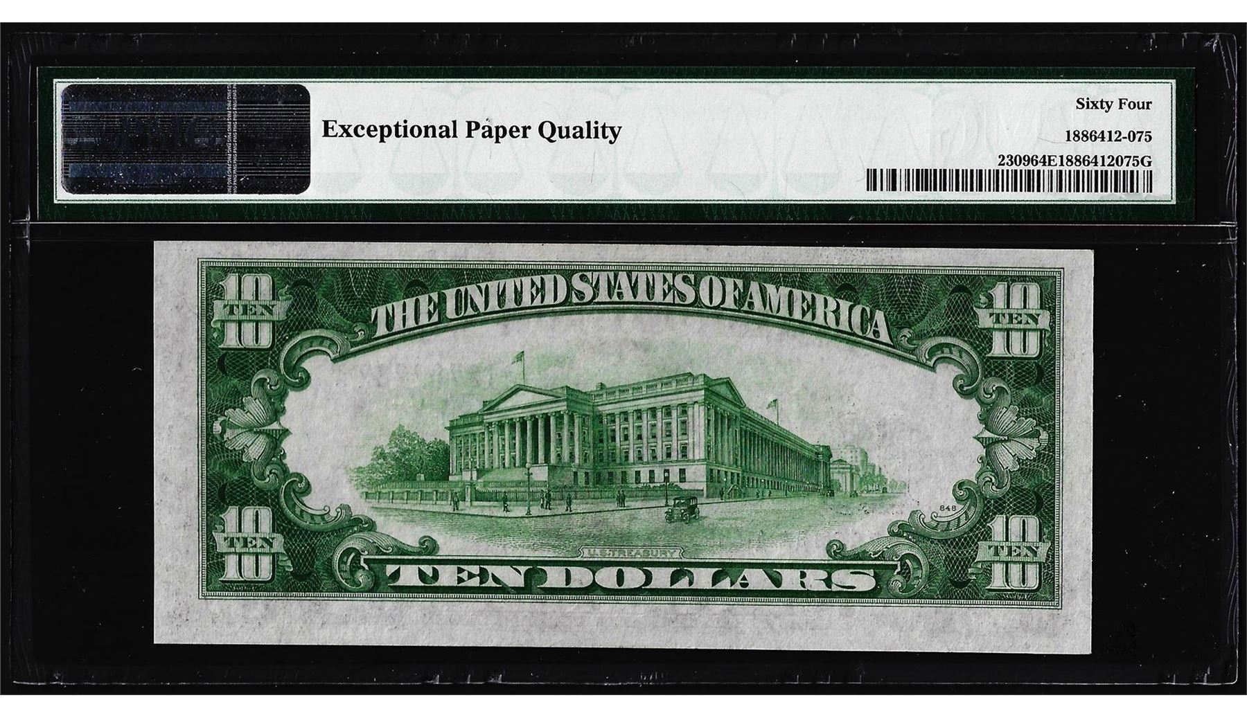 One 1934A $10 North Africa WWII Emergency Issue Silver Certificate Note PMG Ch. Unc 64EPQ. PMG Certified.