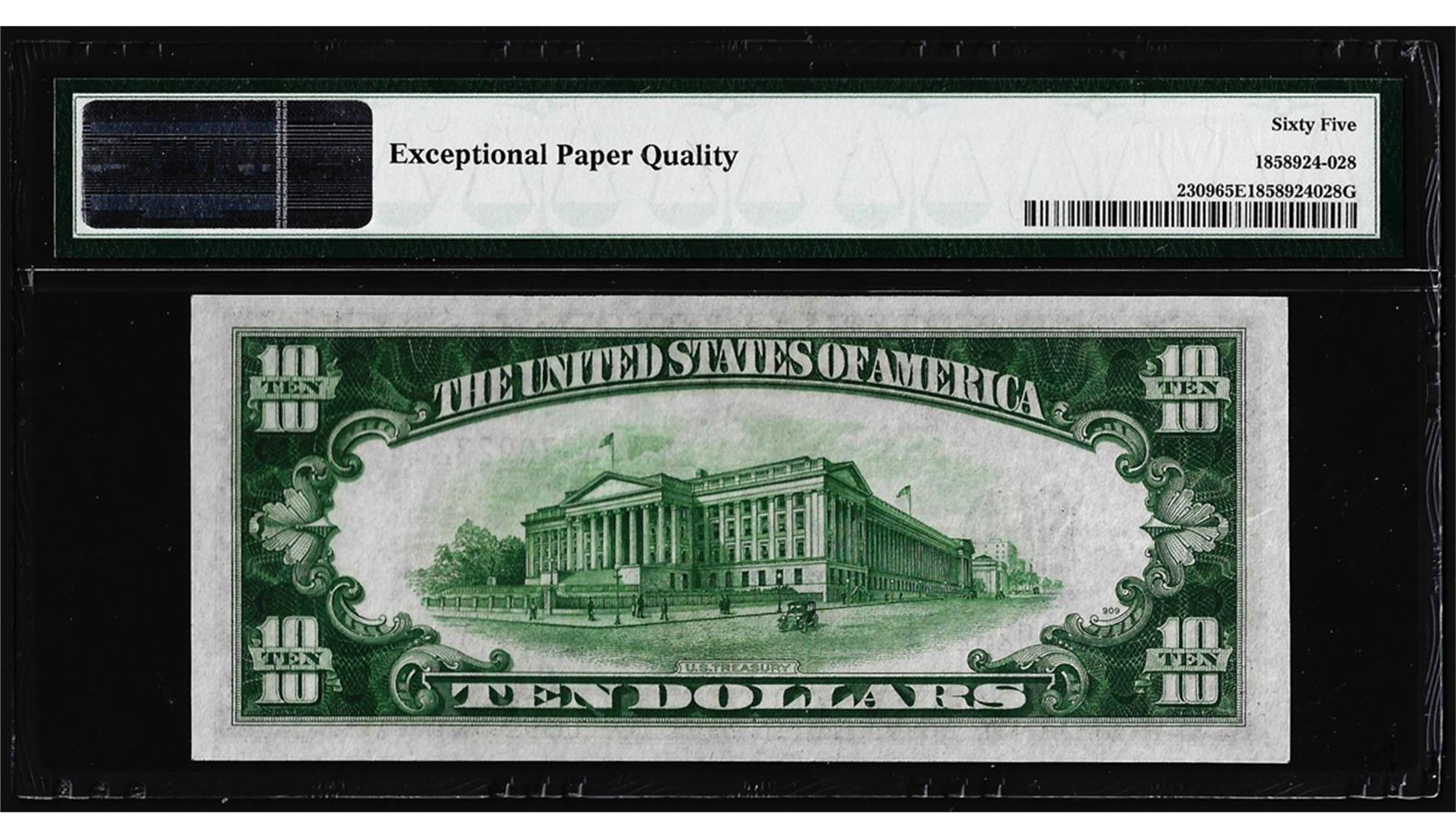 One 1934A $10 North Africa WWII Emergency Issue Silver Certificate Note PMG Gem Unc. 65EPQ. PMG Certified.