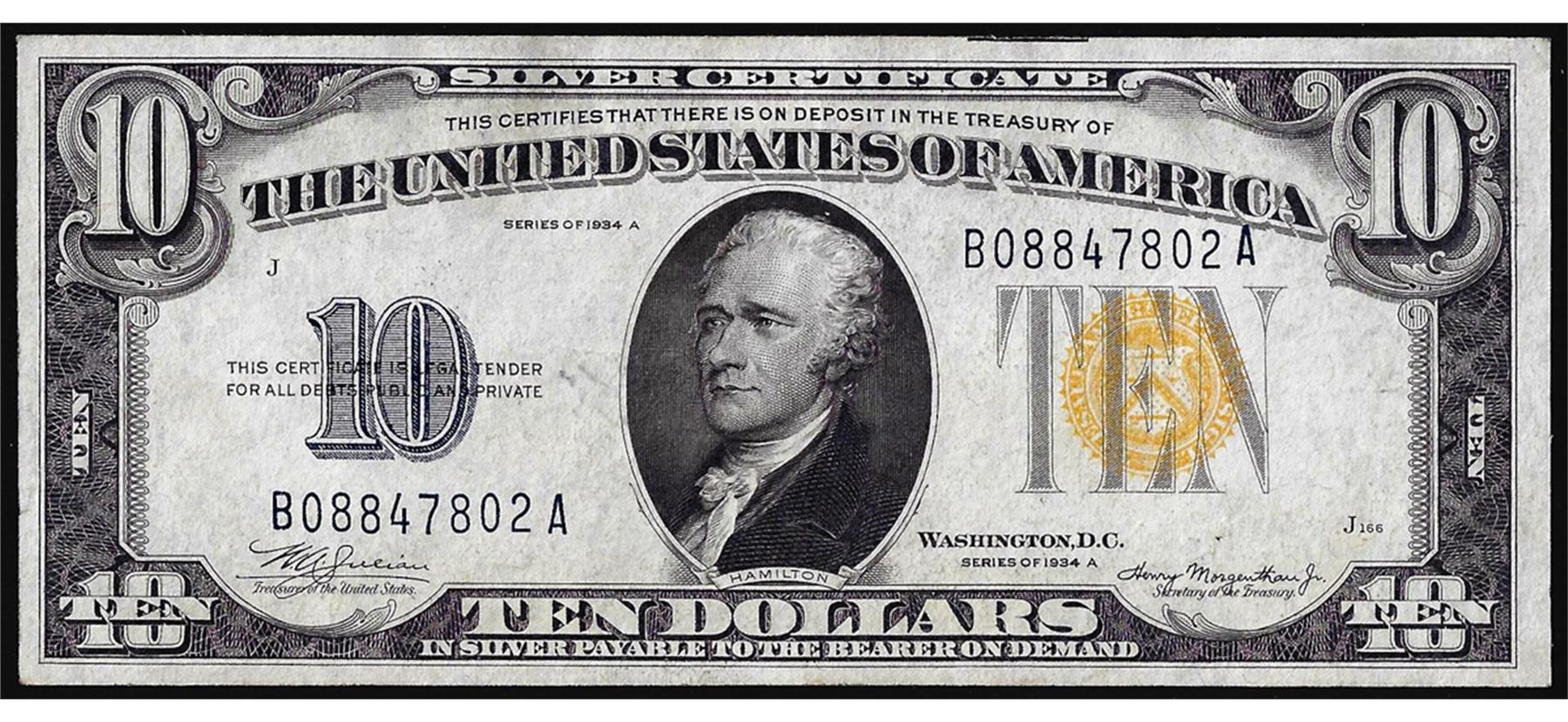 One 1934A $10 North Africa WWII Emergency Issue Silver Certificate Note.