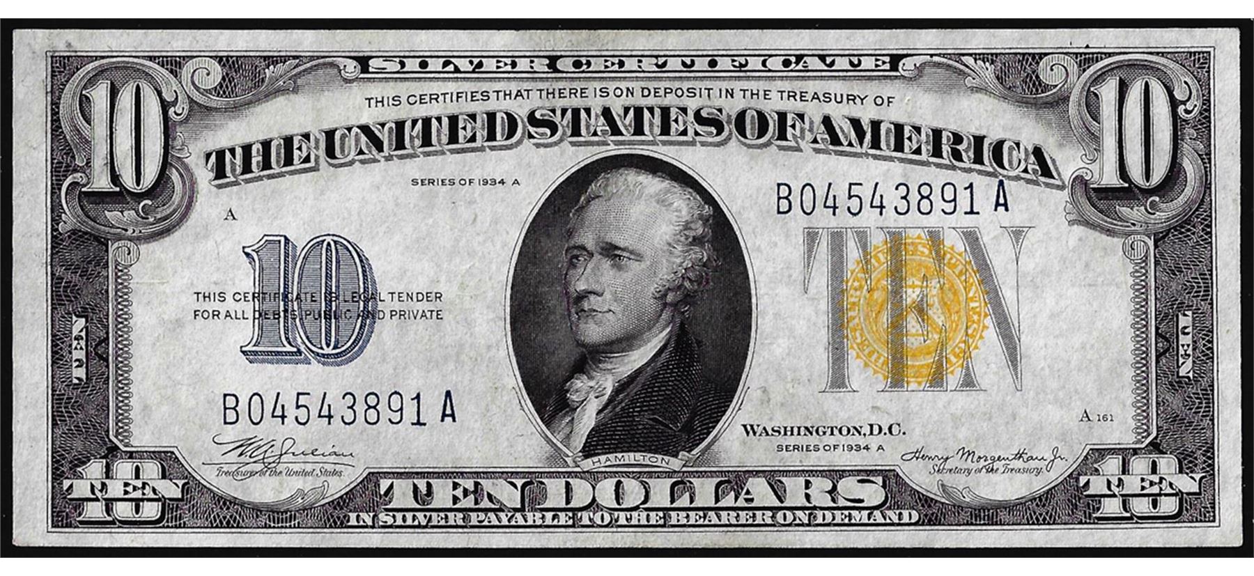 One 1934A $10 North Africa WWII Emergency Issue Silver Certificate Note.