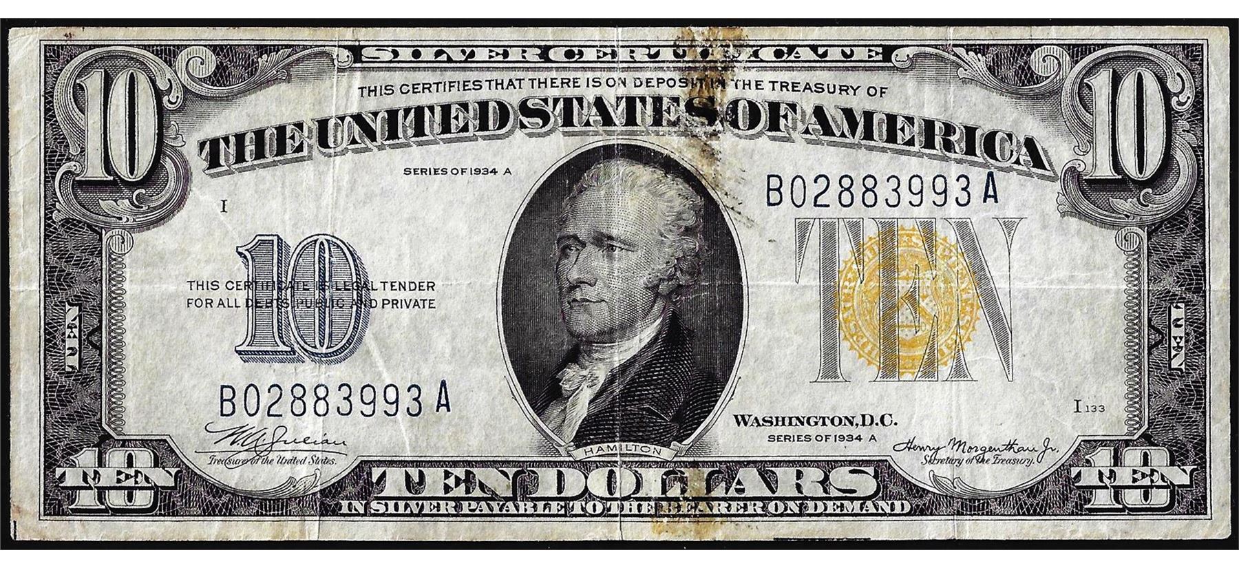 1934A $10 North Africa WWII Emergency Issue Silver Certificate Note