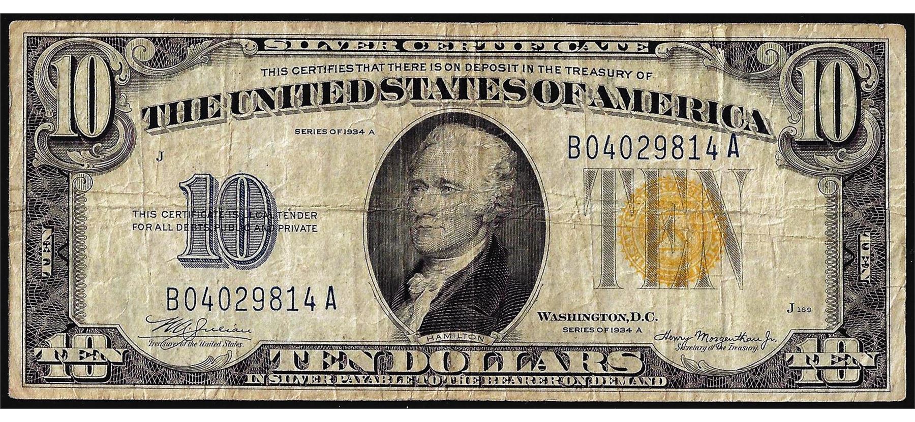 One 1934A $10 North Africa WWII Emergency Issue Silver Certificate Note.