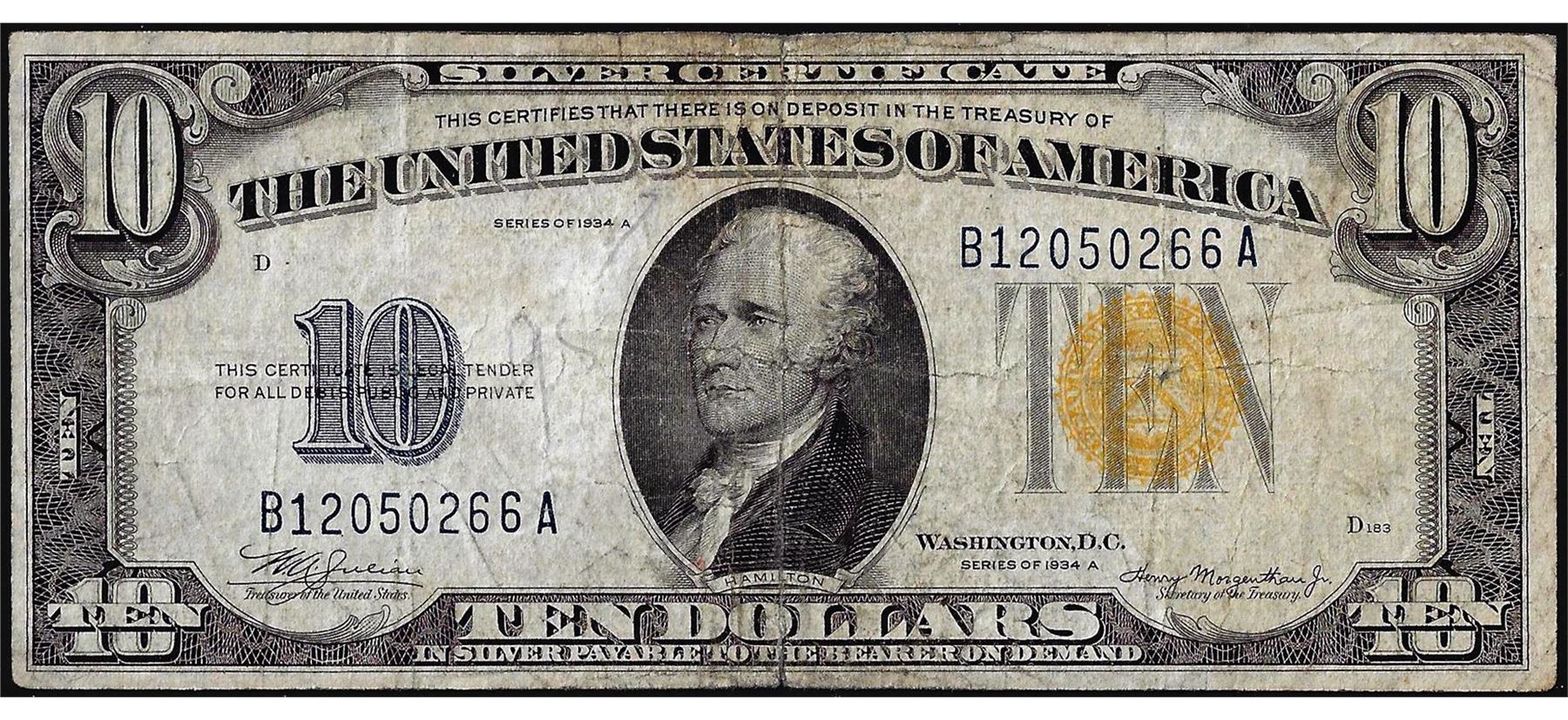1934A $10 North Africa WWII Emergency Issue Silver Certificate Note
