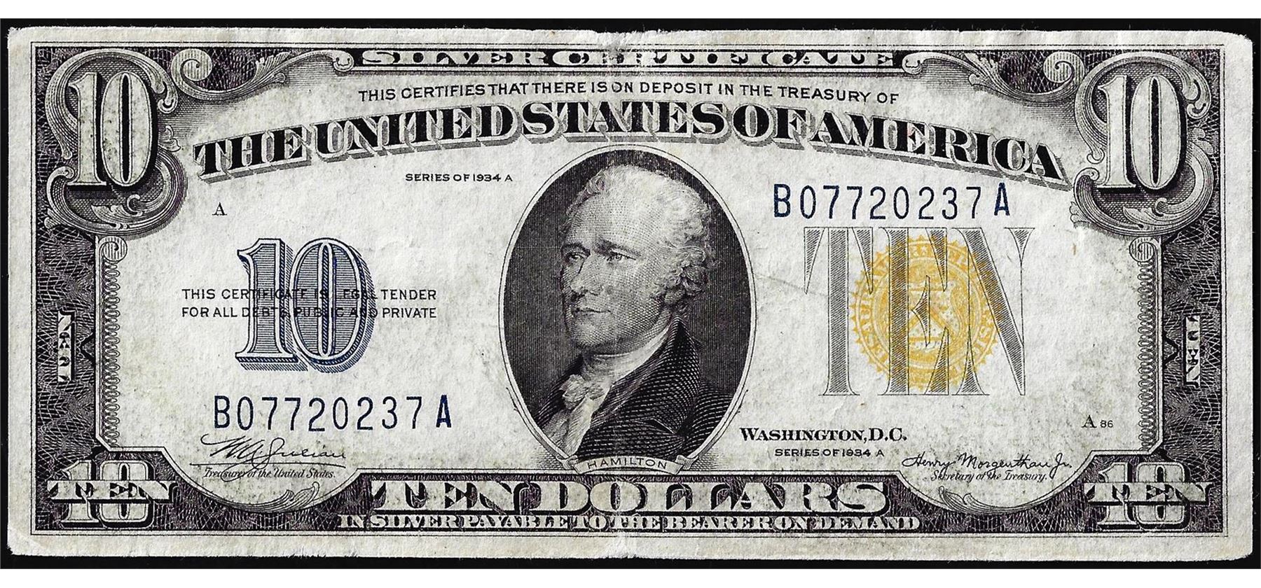 One 1934A $10 North Africa WWII Emergency Issue Silver Certificate Note.