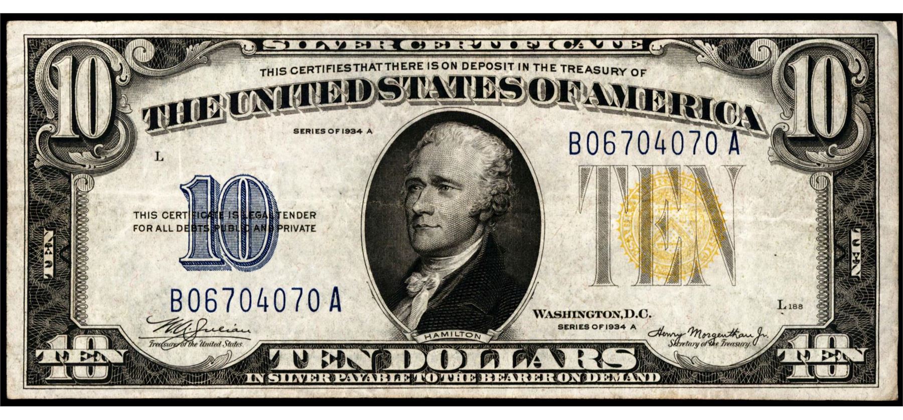 One 1934A $10 North Africa WWII Emergency Issue Silver Certificate Note.