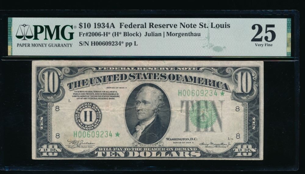 One 1934A $10 STAR ST Louis FRN PMG 25.