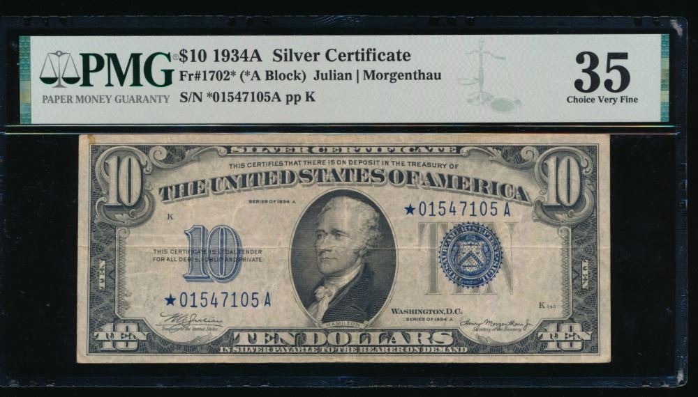 One 1934A $10 STAR Silver Certificate PMG 35.