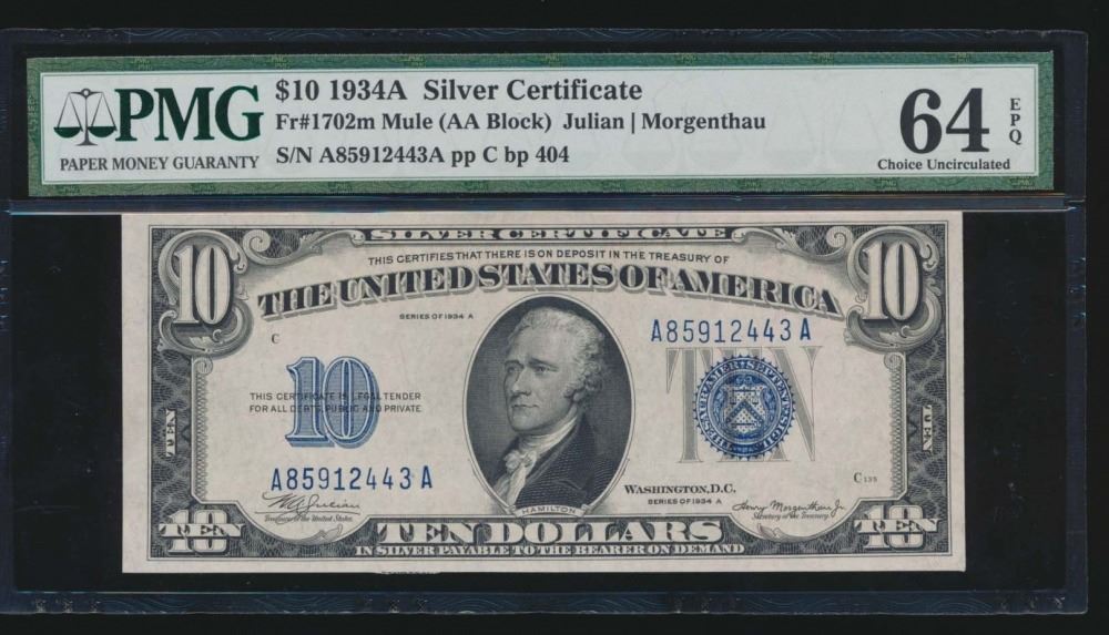 One 1934A $10 Silver Certificate PMG 64EPQ.