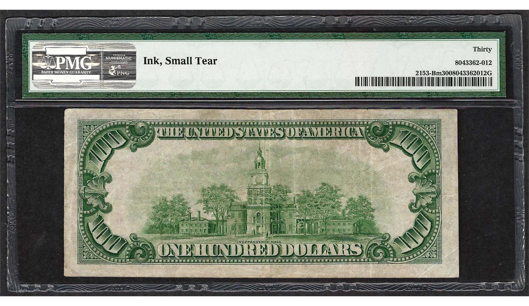 One 1934A $100 Federal Reserve Note Fr.2153-B PMG Very Fine 30. PMG Certified.