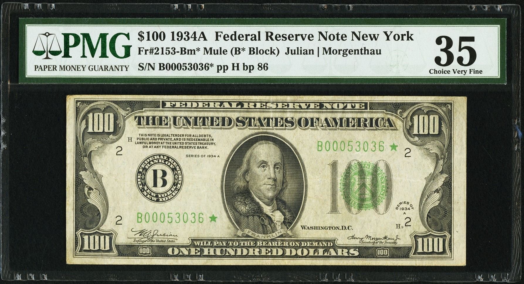 One 1934A $100 New York Federal Reserve STAR Note PMG 35.
