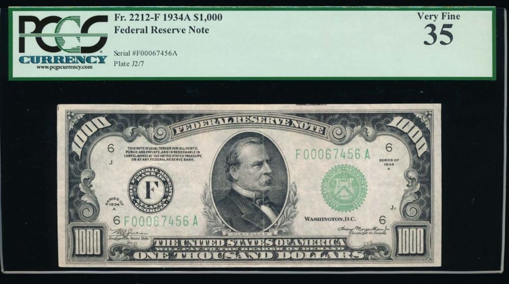 One 1934A $1000 Atlanta Federal Reserve Note PCGS 35.