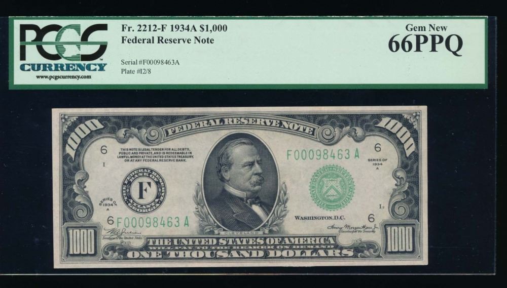 One 1934A $1000 Atlanta Federal Reserve Note PCGS 66PPQ.