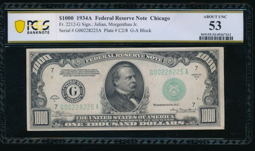 One 1934A $1000 Chicago FRN PCGS 53.