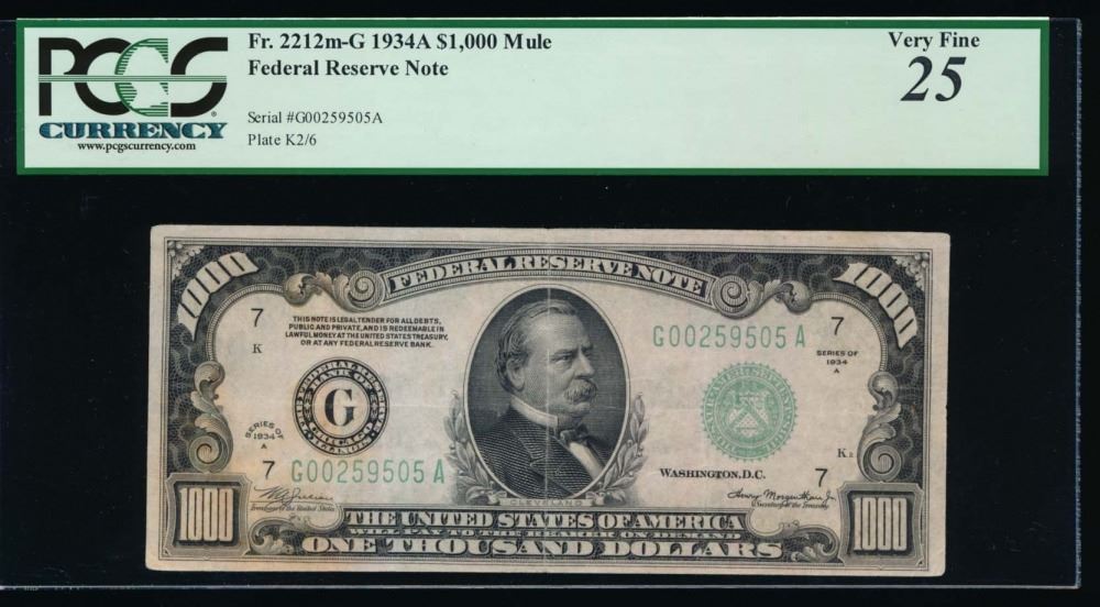 One 1934A $1000 Chicago Federal Reserve Note PCGS 25.