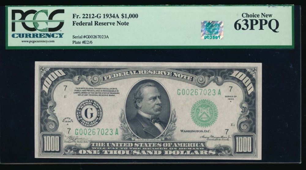 One 1934A $1000 Chicago Federal Reserve Note PCGS 63PPQ.
