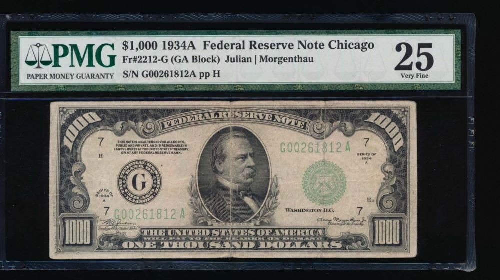 One 1934A $1000 Chicago Federal Reserve Note PMG 25.