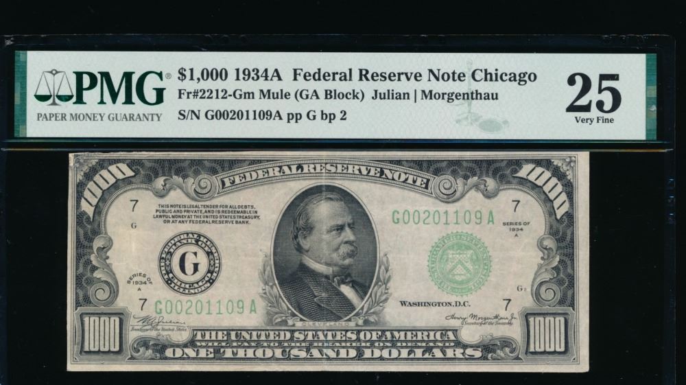 One 1934A $1000 Chicago Federal Reserve Note PMG 25.