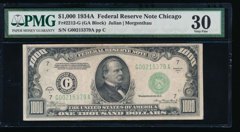 One 1934A $1000 Chicago Federal Reserve Note PMG 30.