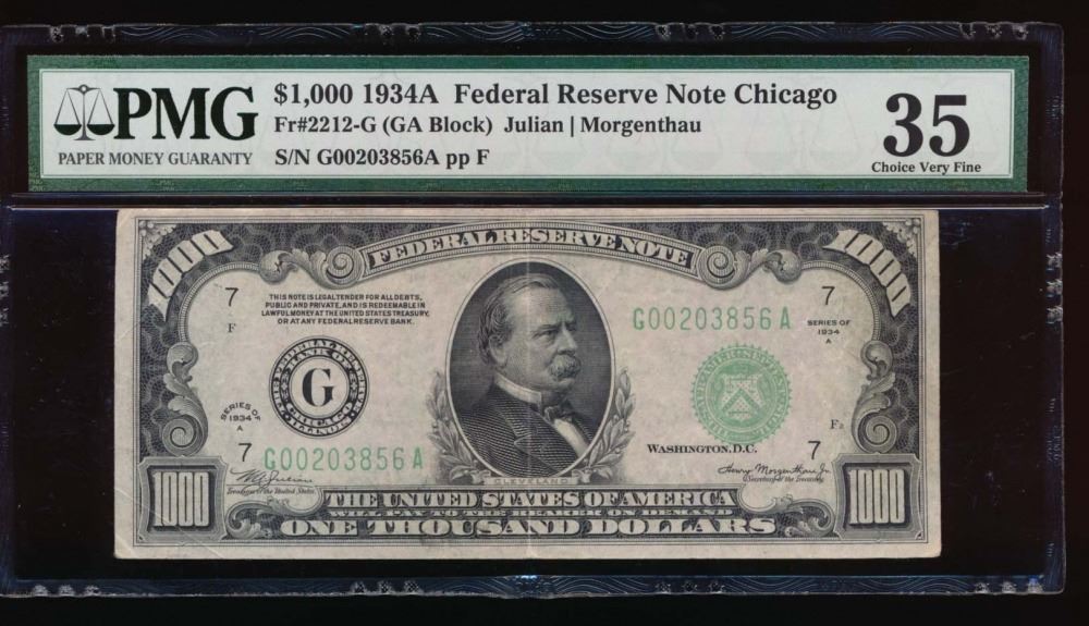One 1934A $1000 Chicago Federal Reserve Note PMG 35.