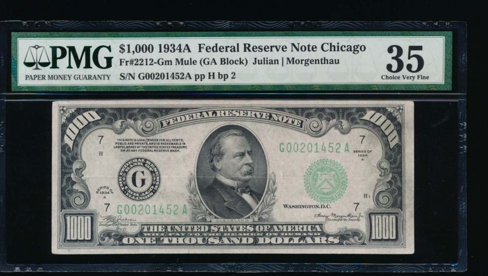 One 1934A $1000 Chicago Federal Reserve Note PMG 35.
