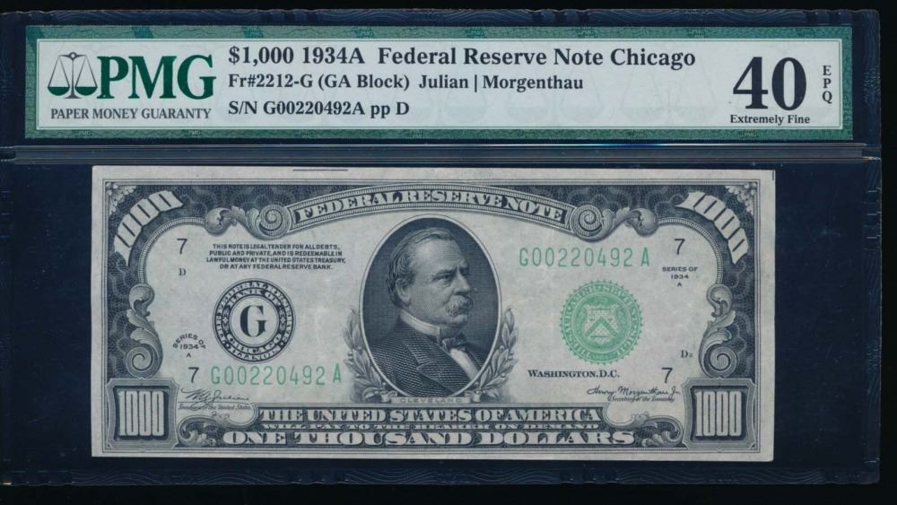One 1934A $1000 Chicago Federal Reserve Note PMG 40EPQ.