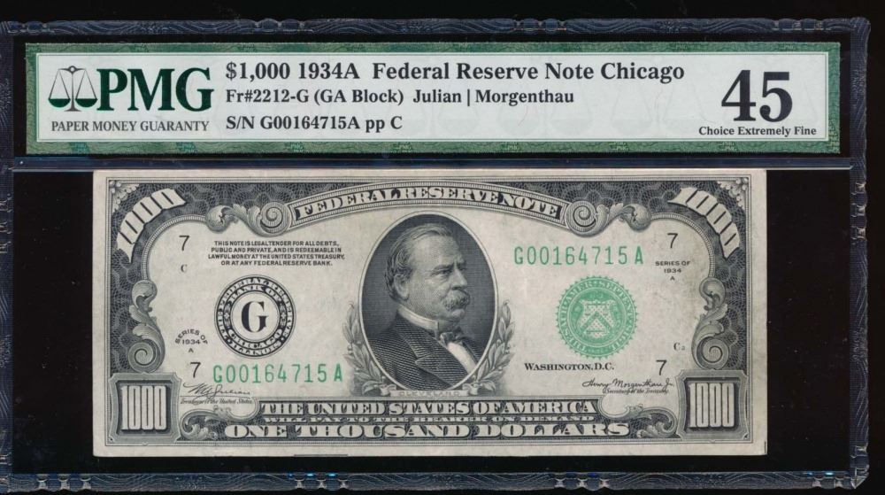 One 1934A $1000 Chicago Federal Reserve Note PMG 45.