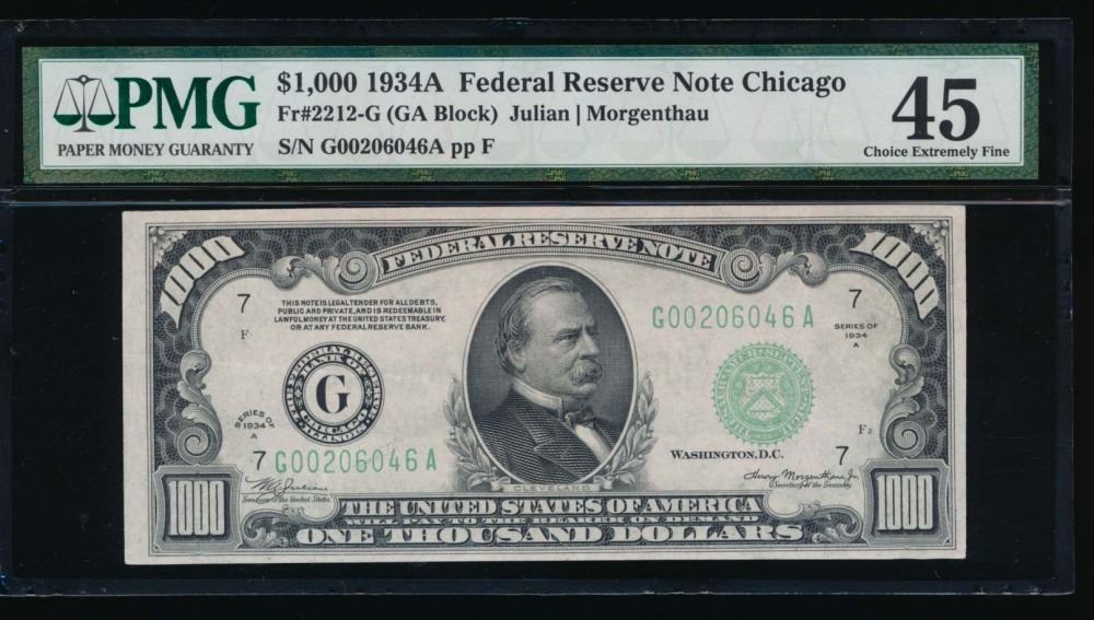 One 1934A $1000 Chicago Federal Reserve Note PMG 45.