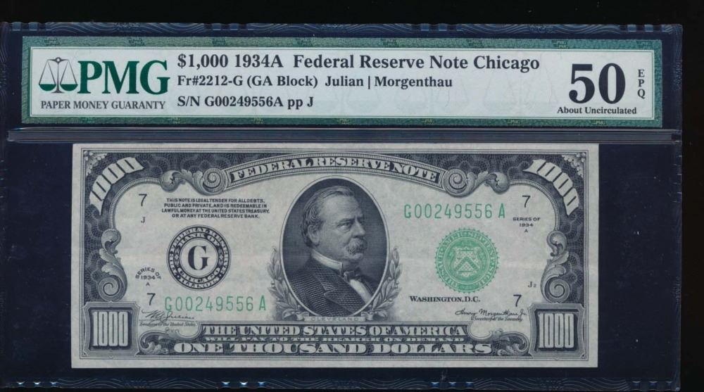 One 1934A $1000 Chicago Federal Reserve Note PMG 50EPQ.