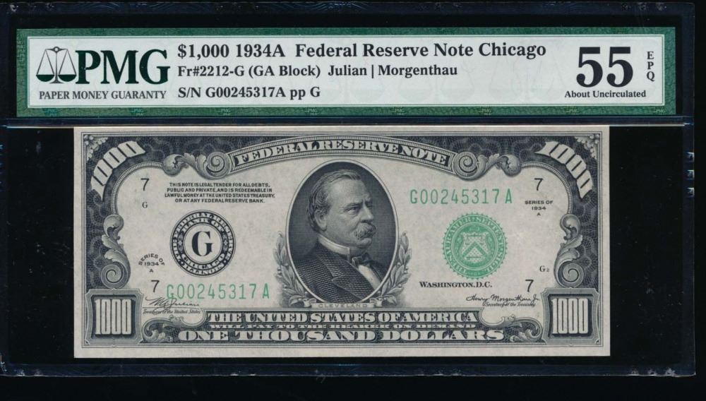 One 1934A $1000 Chicago Federal Reserve Note PMG 55EPQ.