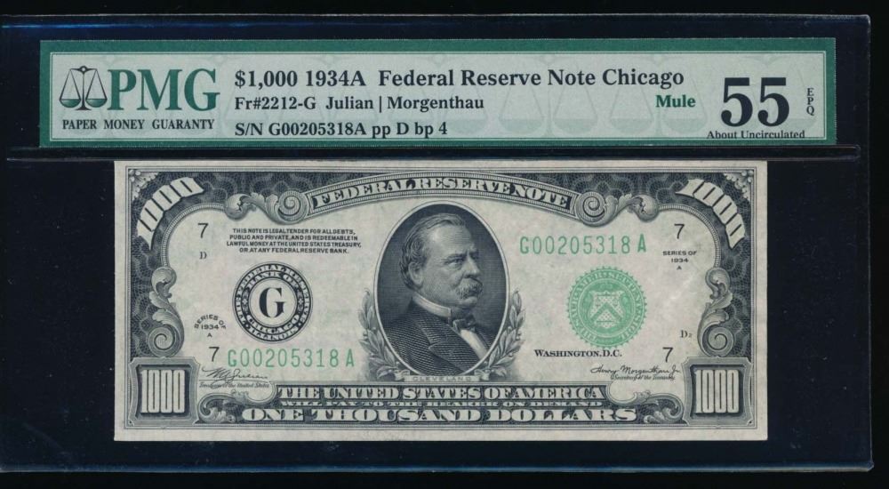 One 1934A $1000 Chicago Federal Reserve Note PMG 55EPQ.