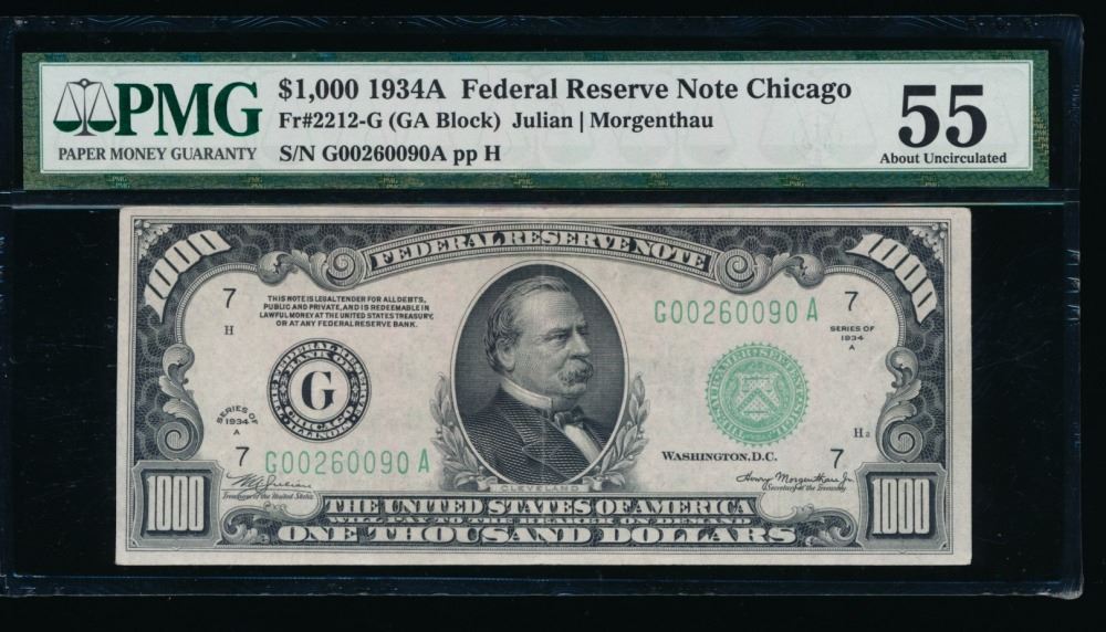 One 1934A $1000 Chicago Federal Reserve Note PMG 55.