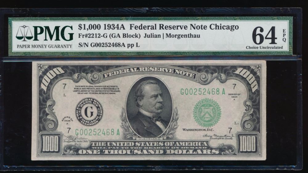 One 1934A $1000 Chicago Federal Reserve Note PMG 64EPQ.