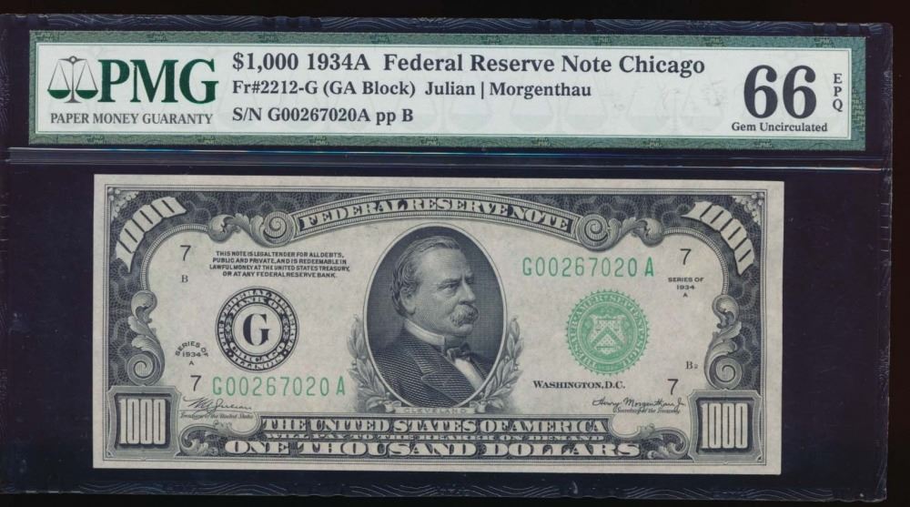 One 1934A $1000 Chicago Federal Reserve Note PMG 66EPQ.