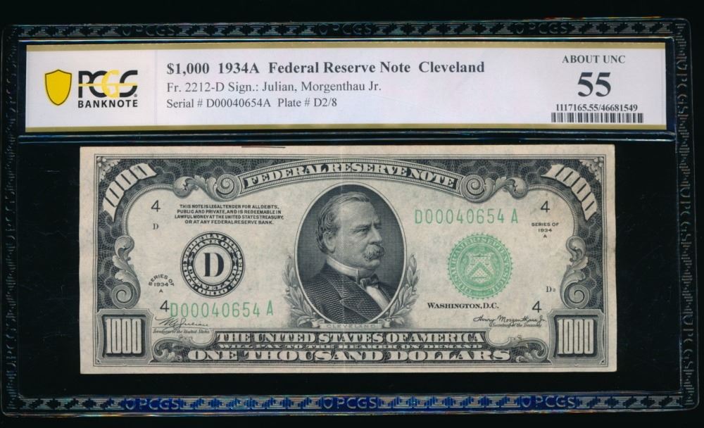 One 1934A $1000 Cleveland FRN PCGS 55.