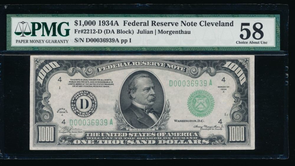 One 1934A $1000 Cleveland Federal Reserve Note PMG 58.