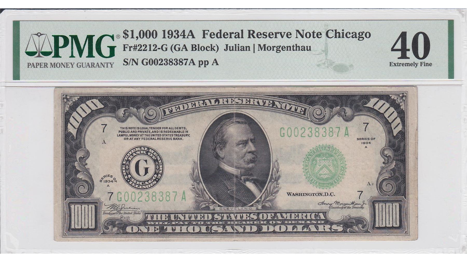 One 1934A $1000 Federal Reserve Note Chicago.