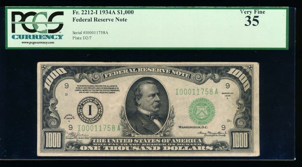 One 1934A $1000 Minneapolis Federal Reserve Note PCGS 35.